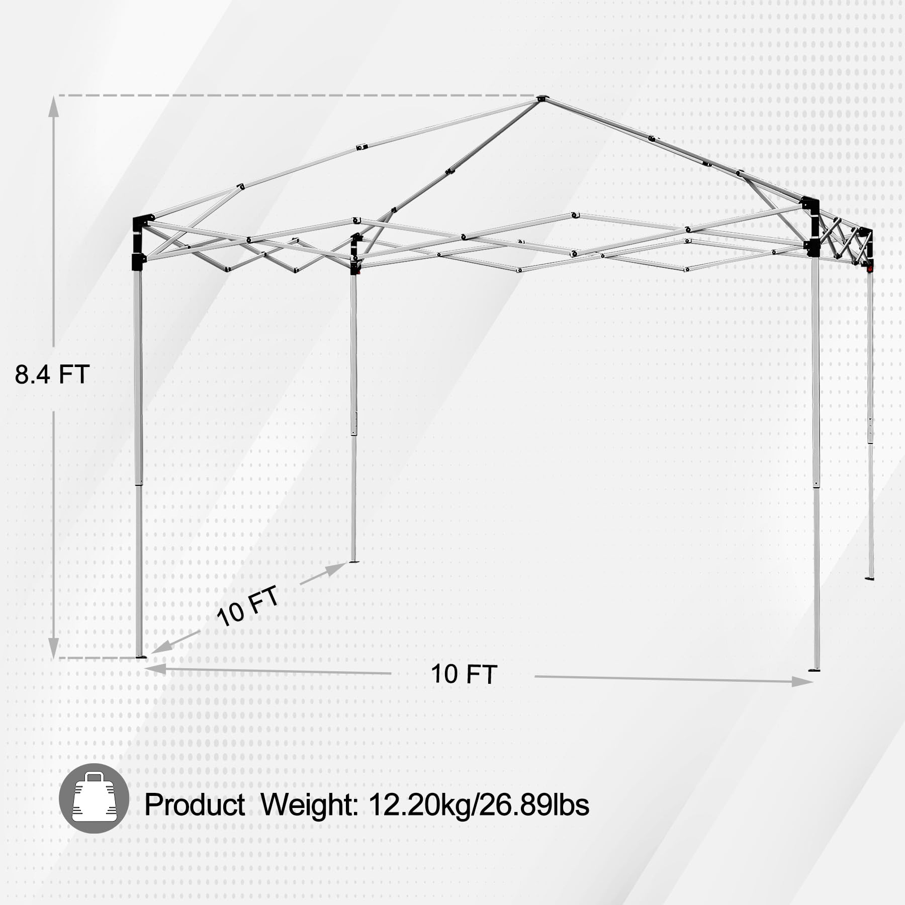 - 【Dimensions】 Overall Size: 10 x 10 FT (120.5"x 120.5" x 99.6"H), Carry bag size: 52''x9.4''x9.4”, Product weight: 26.89 lbs, Color: Blue