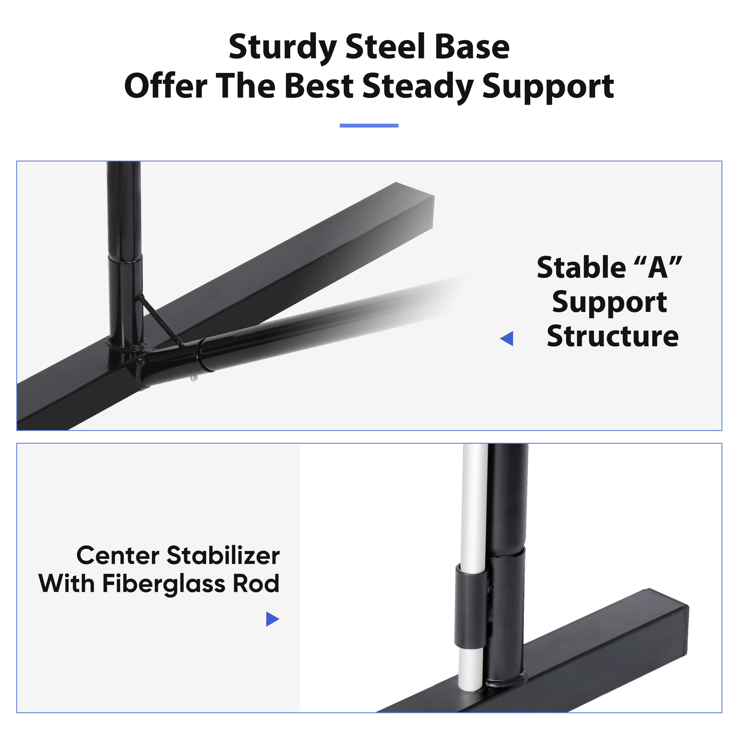 - 【Superior Stabilization】Hook and loop connectors near each pole can be tightened and adjusted to ensure the net measures 36”Height at the ends and 31”Height in the center. Medial fiberglass net height support encased in a nylon sleeve and attached with a strap to the center foot support can maintain the proper height of 31" at the center of the net