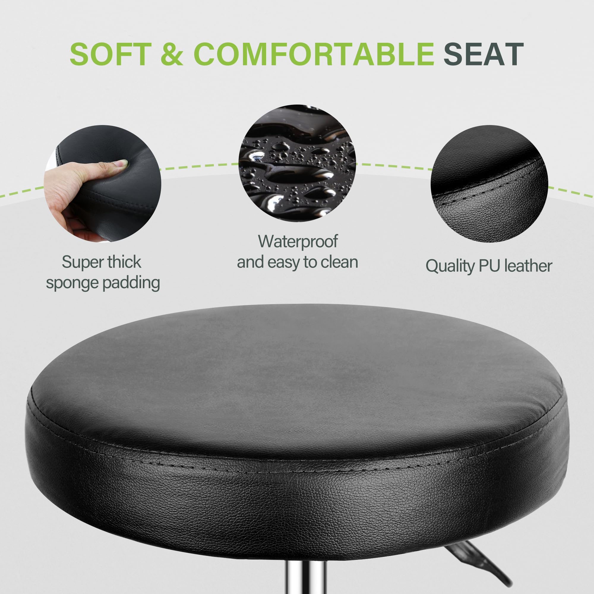 - 【Height Adjustable】- Catering to various height preferences, our black rolling stool boasts a hydraulic gas lift mechanism. Effortlessly adjust the height from 18" to 23" with the convenient handle located beneath the seat, ensuring optimal ergonomic support for every user